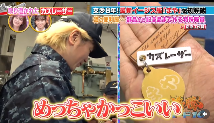 カズレーザーさんに記念品をプレゼントするのは撮影前から決まっていたことでしょうけど、応急工作員さんが艦内の工作機で記念品を手作りしたことは事実です。応急工作員が海の上であらゆる部品や記念品を作れる技術は 非常に重要 なのです。